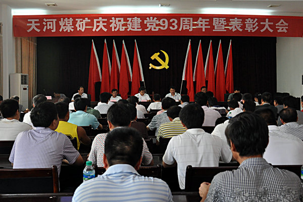 為紀念建黨93周年,表彰先進,樹立典型,7月1日下午,天河煤礦召開慶祝建黨93周年暨表彰大會,礦黨委領導班子、基層單位黨政領導、機關副科以上干部及新黨員共90余人參加會議,礦長熊明亮主持會議。