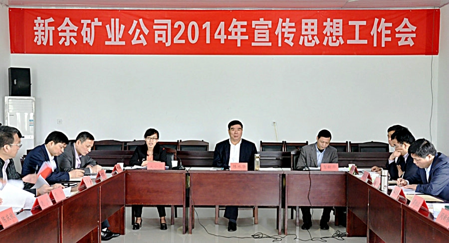 4月2日上午,新余礦業公司在八景煤業召開2014年宣傳思想工作會,傳達貫徹省集團宣傳思想工作會議精神,部署今年的宣傳思想工作。充分認清當前嚴峻的安全形勢和經濟形勢,唱響主旋律,傳播正能量。為公司上下凝心聚力、攻堅克難、轉型創新、改革突圍提供內生動力。公司權屬各單位宣傳工作分管領導及宣傳部門負責人參加會議,公司黨委工作部相關人員參加會議。公司黨委副書記、工會主席陳水華出席會議并講話。