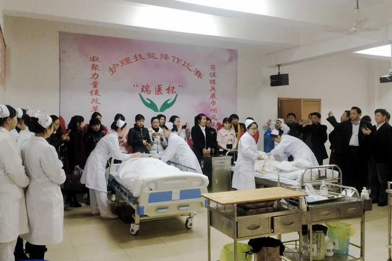 來自瑞州醫院、新余礦業醫院、大光山煤業公司醫院、八景煤業公司醫院、棠浦煤業公司醫院5個單位的7支代表隊、28位參賽選手參加了本次競賽。競賽分為理論考試和護理技能操作兩個部分;在理論考試中,參賽選手細心審題、深思熟慮、認真作答;在護理技能操作中,選手們沉著冷靜、團結協作,心肺復蘇、靜脈輸液、導尿、氧氣吸入,每一步都嚴格按照規定操作,動作規范,技術嫻熟。操作過程中,選手們還注重與“患者”溝通,使用親切細致的語言,將“人文護理”的理念融入到護理專業技能操作過程中,展現了白衣天使的良好形象。