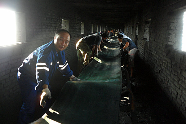 因今天最高氣溫達38℃,公司各部室管理人員早上7點半就趕到大光山礦井口,布置好任務后就分頭行動。皮帶所處儲煤樓空間狹小,坡度較大,空氣又不對流,黨員干部身先士卒,發揮帶頭作用,大家分別站在兩側喊著號子齊心協力拖拽皮帶,勞動現場人頭攢動,一片熱鬧非凡的景象。雖說機關的同志常年坐辦公室,很少到礦井勞動,但是他們在更換運輸皮帶的過程中個個爭先恐后,不怕苦;個個汗流浹背,不叫累。女工們也沒閑著,給井口礦工和機關人員送來了西瓜,大家干勁更足了,兩個多小時就更換運輸皮帶120余米,順利地完成了這次突擊性任務。